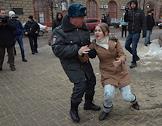 Сотрудники полиции во время задержания на аллее Героев участников "Народного схода" требующих отставки губернатора и мэра города.