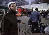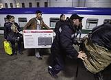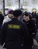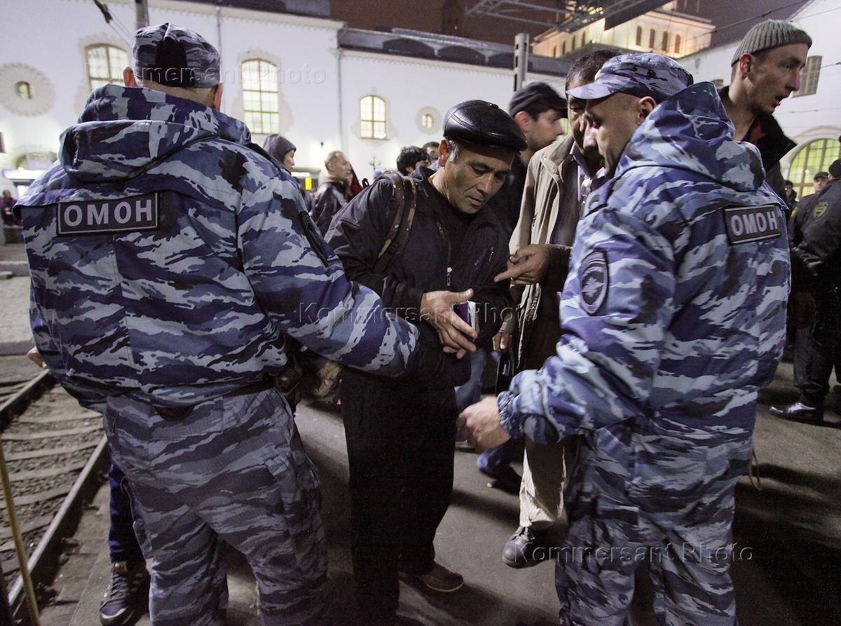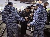 Сотрудники ОМОНа во время проверки документов у пассажиров поезда "Москва-Ташкент" на Казанском вокзале.