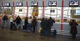 Жанровая фотография. Виды Курского железнодорожного вокзала. Пассажиры у касс по продаже железнодорожных билетов.