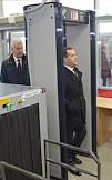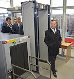 Слева направо: глава дирекции железнодорожных вокзалов ОАО "РЖД" Сергей Абрамов, министр транспорта России Максим Соколов, президент ОАО "Российские железные дороги" (РЖД) Владимир Якунин и председатель правительства России Дмитрий Медведев во время осмотра систем безопасности на Курском железнодорожном вокзале.
