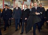 Слева направо: президент ОАО "Российские железные дороги" (РЖД) Владимир Якунин, министр транспорта России Максим Соколов, глава дирекции железнодорожных вокзалов ОАО "РЖД" Сергей Абрамов, председатель правительства России Дмитрий Медведев и мэр Москвы Сергей Собянин во время осмотра систем безопасности на Курском железнодорожном вокзале.
