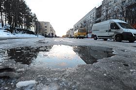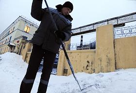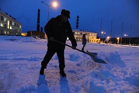 Сотрудники коммунальной службы во время уборки снега на территории Надвоицкого алюминиевого завода.
