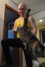 Виды города Надвоицы. Мужчина с рюкзаком за спиной перелазеет через борт катка Надвоицкого алюминиевого завода.