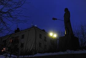 Виды города Надвоицы. Заснеженный памятник вождю революции В.И.Ленину.
