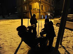Виды города Надвоицы. Детская площадка во дворе жилого дома. Карусель.