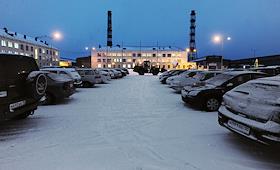 Виды города Надвоицы. Автомобильная парковка на территории Филиала Надвоицкого алюминиевого завода Сибирско-Уральской Алюминиевой компании (СУАЛ).
