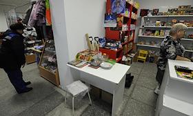 Виды города Надвоицы. Торговые залы в магазине. Продуктовый и промышленные товары.