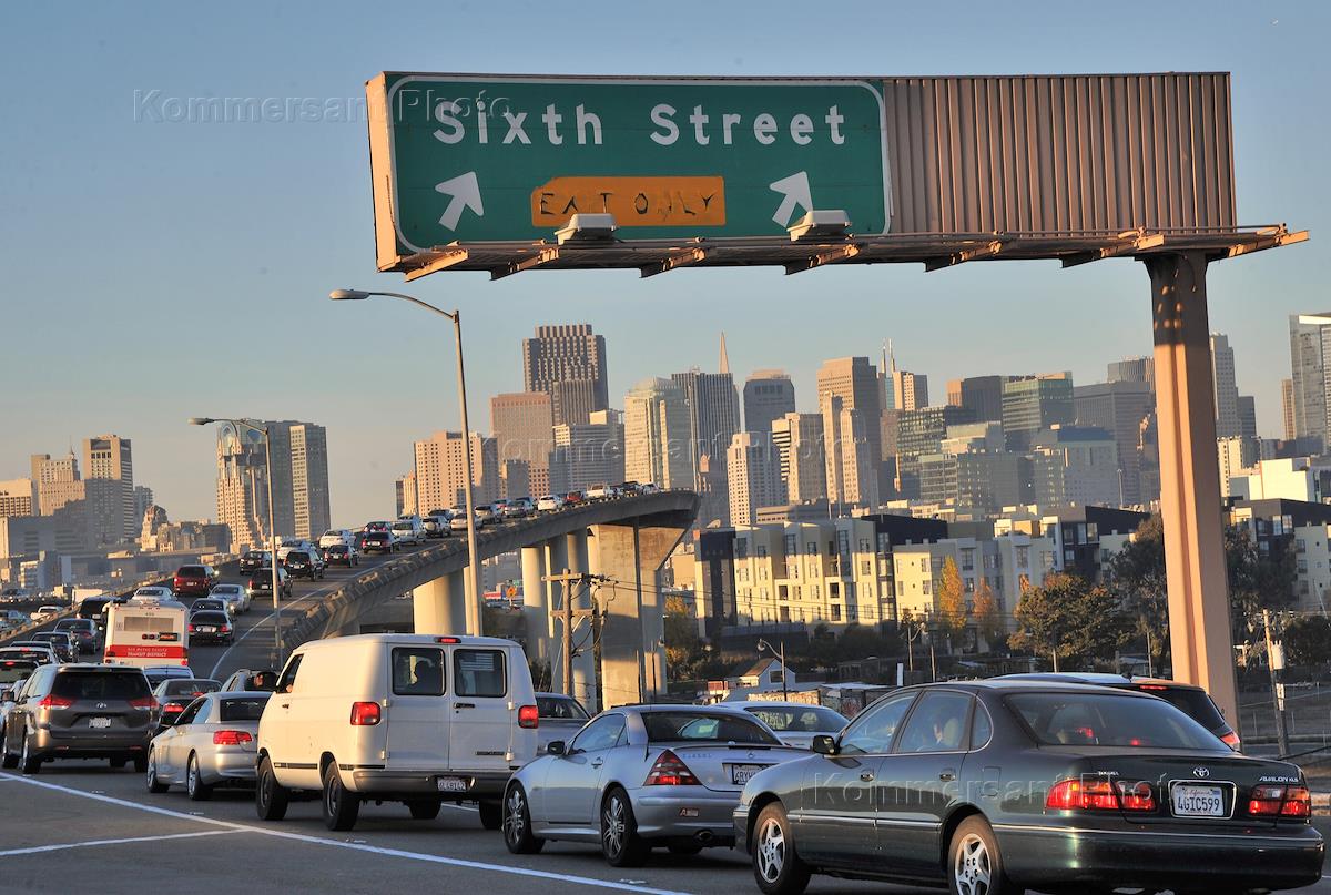 Views of San Francisco. Turn onto Sixth Street.
