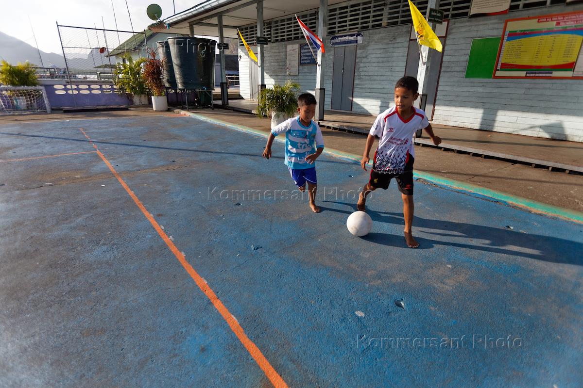 Таиланд. Мусульманская деревня (или деревня морских цыган), расположенная рядом с островом Ко Пани в заливе Пханг Нга. Спортивная площадка.