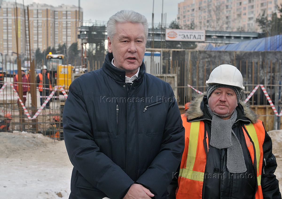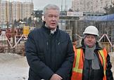 Мэр Москвы Секргей Собянин во время осмотра строительства эстакады на пересечении Новорязанского шоссе с улицами Генерала Кузнецова и Маршала Полубоярова.