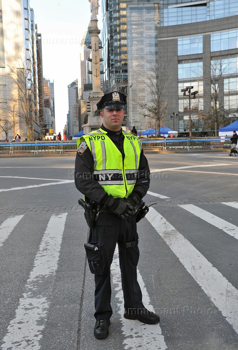 Views of New York. Traditional parade of air-balloons Macy’s Thanksgiving Day Parade, organized by the principal network of retail business Macy's. Policemen are during the parade.