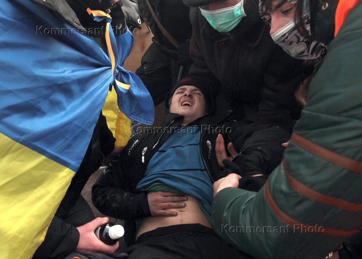 Евромайдан. Беспорядки на улице Грушевского. Пострадавший.