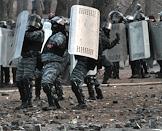 Евромайдан. Беспорядки на улице Грушевского. Столкновения между сторонниками оппозиции и сотрудниками правоохранительных органов произошли при попытке митингующих прорваться к зданиям правительства и парламента Украины. Протестующие бросают камни в бойцов внутренних войск МВД Украины.