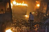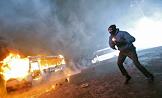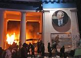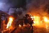 Горящие автобусы во время беспорядков возле стадиона "Динамо". Столкновения между сторонниками оппозиции и сотрудниками правоохранительных органов произошли при попытке митингующих прорваться к зданиям правительства и парламента Украины.