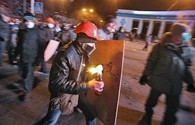 Евромайдан. Беспорядки на улице Грушевского. Столкновения между сторонниками оппозиции и сотрудниками правоохранительных органов произошли при попытке митингующих прорваться к зданиям правительства и парламента Украины.