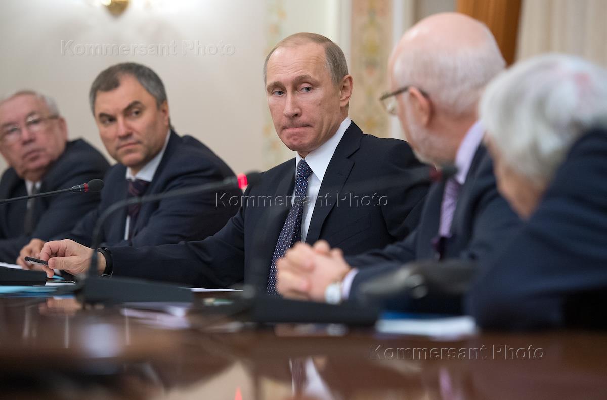 Слева направо: уполномоченный по правам человека в России Владимир Лукин, первый заместитель руководителя администрации президента России Вячеслав Володин, президент России Владимир Путин и советник президента, председатель Совета при президенте по развитию гражданского общества и правам человека Михаил Федотов во время заседания президиума совета при президенте России по развитию гражданского общества и правам человека. Заседание прошло в Малом зале администрации президента.