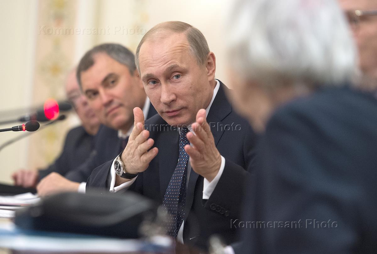 Президент России Владимир Путин во время заседания президиума совета при президенте России по развитию гражданского общества и правам человека. Заседание прошло в Малом зале администрации президента.