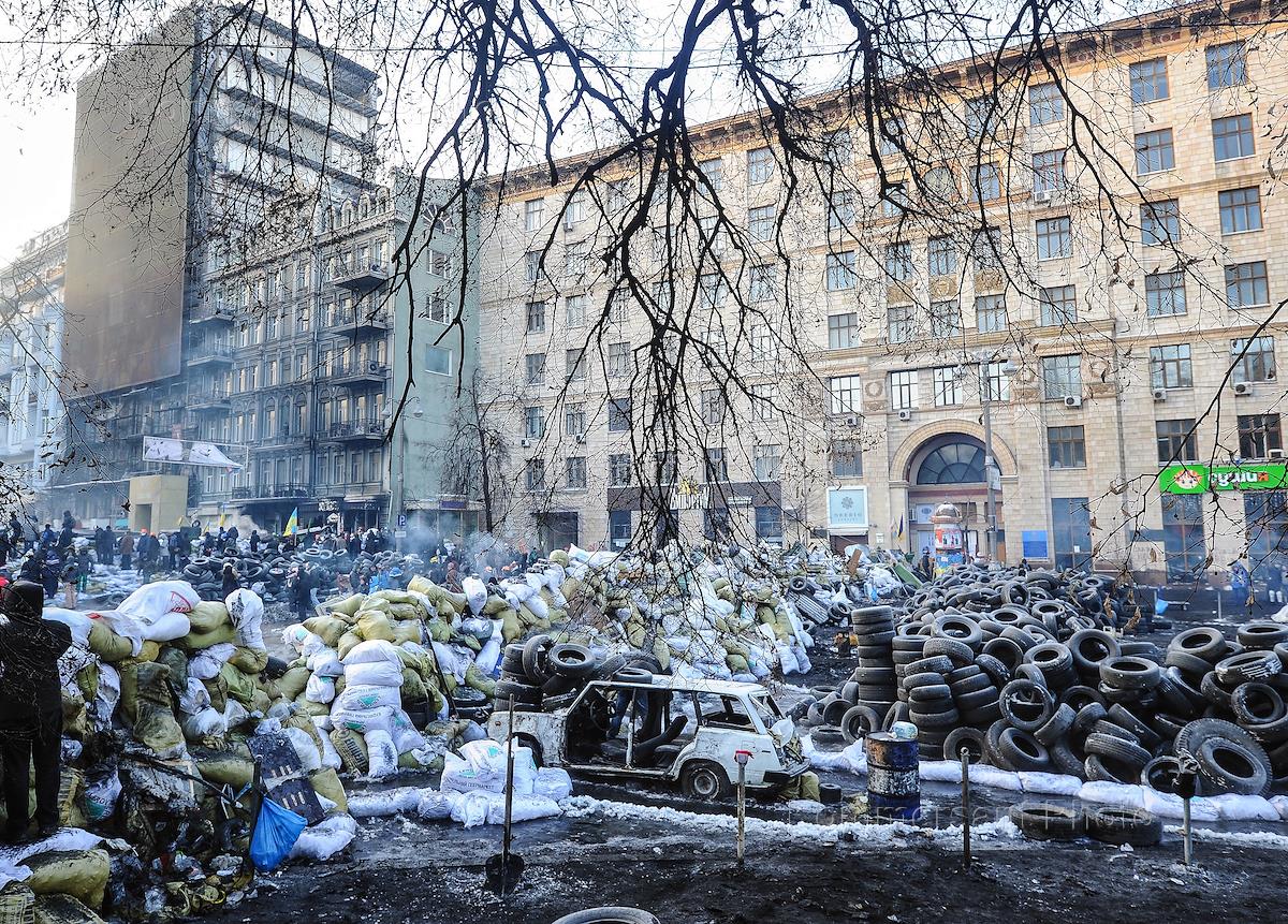 Евромайдан. Баррикады сторонников евроинтеграции Украины на майдане Незалежности (площадь Независимости).