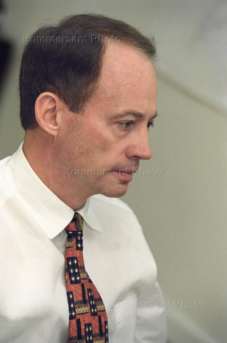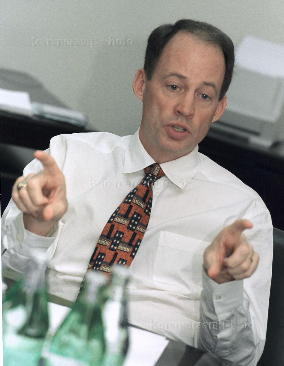 Президент компании "СИДАНКО" Роберт Шеппард отвечает на вопросы корреспондента "Ъ" в своем рабочем кабинете.