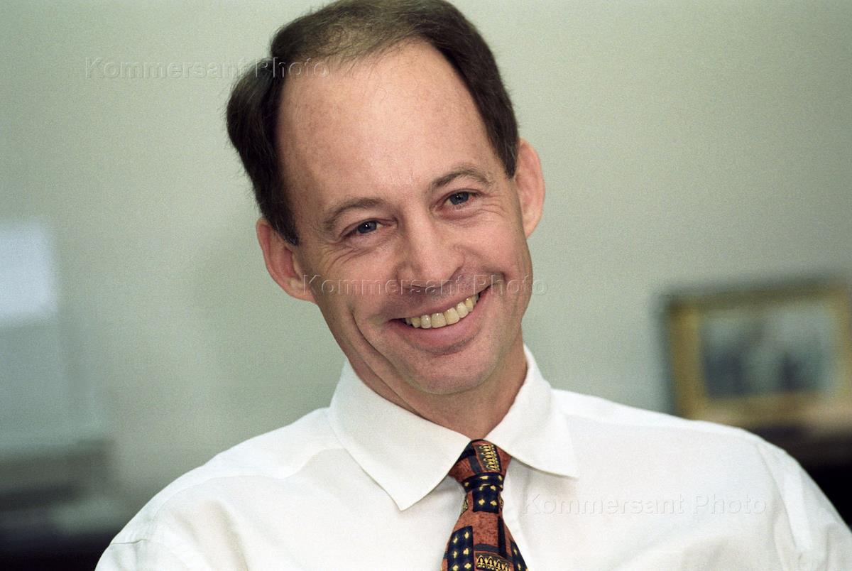 Президент компании "СИДАНКО" Роберт Шеппард отвечает на вопросы корреспондента "Ъ" в своем рабочем кабинете.