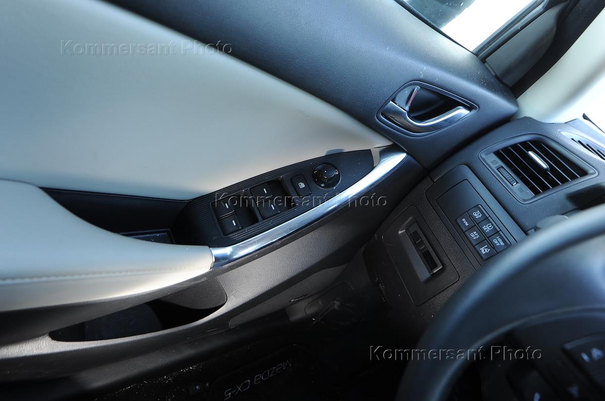 Тест-драйв автомобиля "Mazda CX-5" (Мазда CX-5). Блок управления стеклами автомобиля на водительской двери.