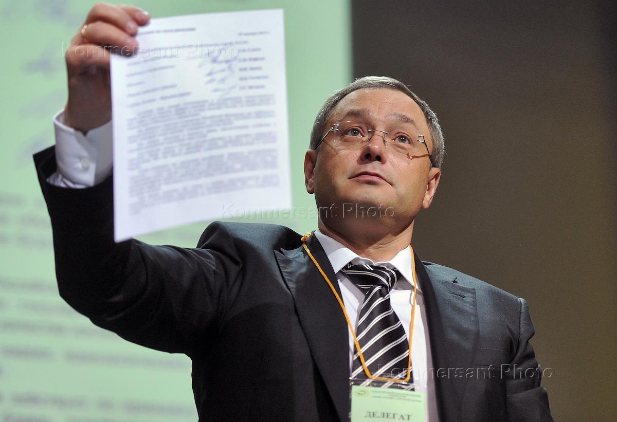 Chairman of the "Russian Social-Democrats" Gennady Gudkov during a meeting of the Extraordinary Congress of the "Green Alliance - the People's Party". Congress took place in the concert hall "Borodino Hall".