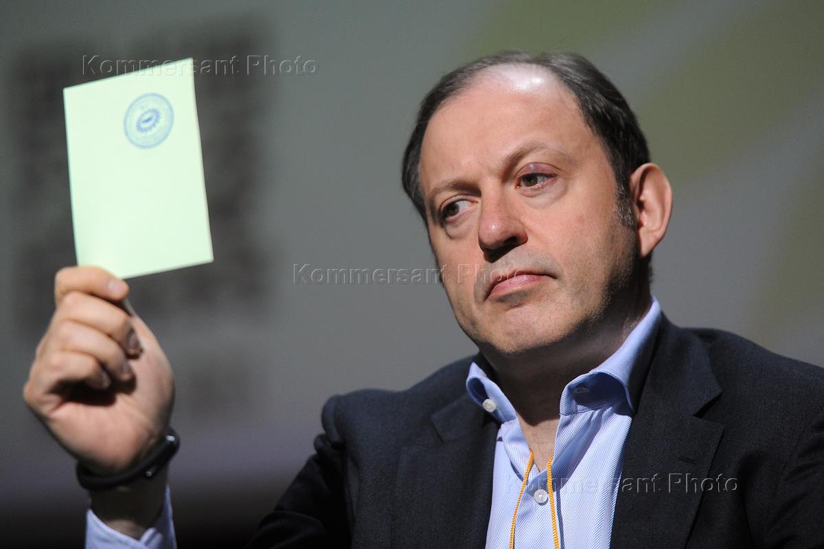 Председатель центрального совета политической партии "Альянс Зеленых — Народная партия" Олег Митволь во время заседания внеочередного съезда "Альянс Зеленых - Народной партии" в концертном зале "Бородино-Холл".