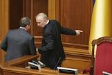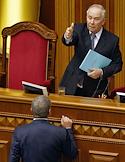 Внеочередное заседание Верховной рады Украины (ВРУ). Председатель ВРУ VII созыва Владимир Рыбак (справа) во время заседания.