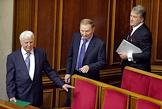 Внеочередное заседание Верховной рады Украины. Слева направо: бывшие президенты Украины Виктор Ющенко, Леонид Кучма и Леонид Кравчук во время заседания.