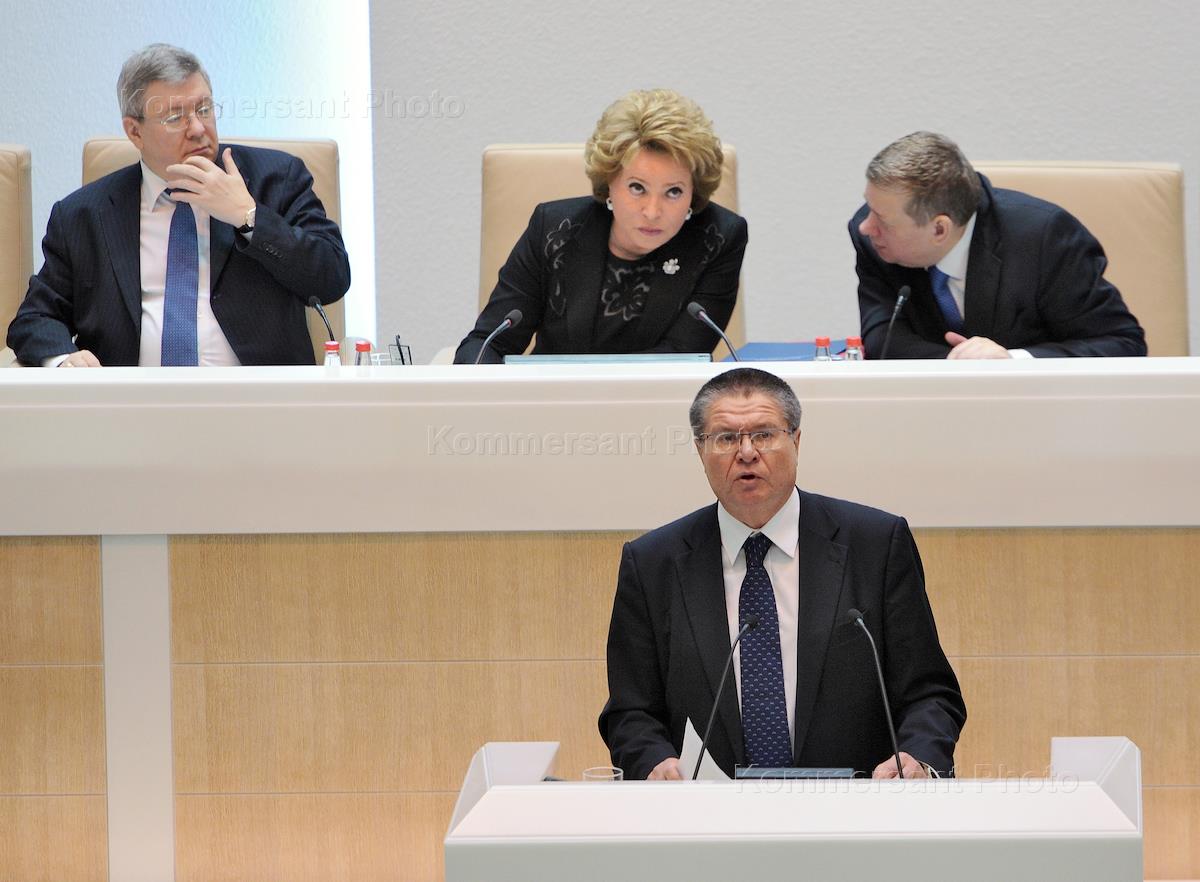 Министр экономического развития России Алексей Улюкаев на 344-м заседании Совета Федерации России.