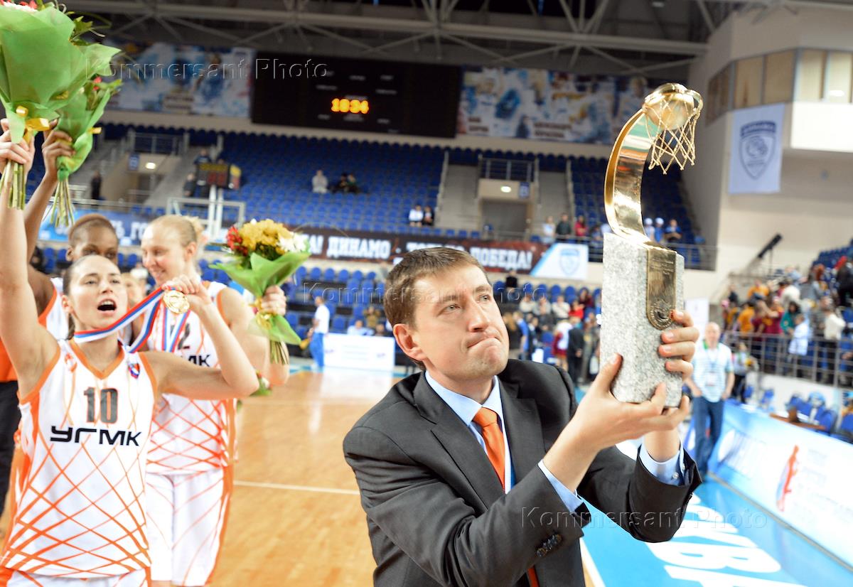 Кубок России по баскетболу среди женских команд. "Финал Четырех". Матч между командами УГМК (Екатеринбург) и "Надежда" (Оренбург). Команда УГМК в шестой раз подряд выиграла Кубок России. Директор баскетбольного клуба УГМК Максим Рябков на церемонии награждения.