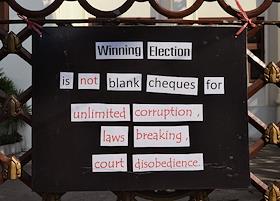 Организованное питание оппозиционным демонстрантам, требующих переноса выборов на неопределенный срок и проведения реформы против "популизма и диктата большинства в парламенте и политике".