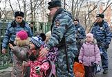 Сотрудники полиции выводят детей из московской школы № 263, куда проник вооруженный старшеклассник - учащийся школы.