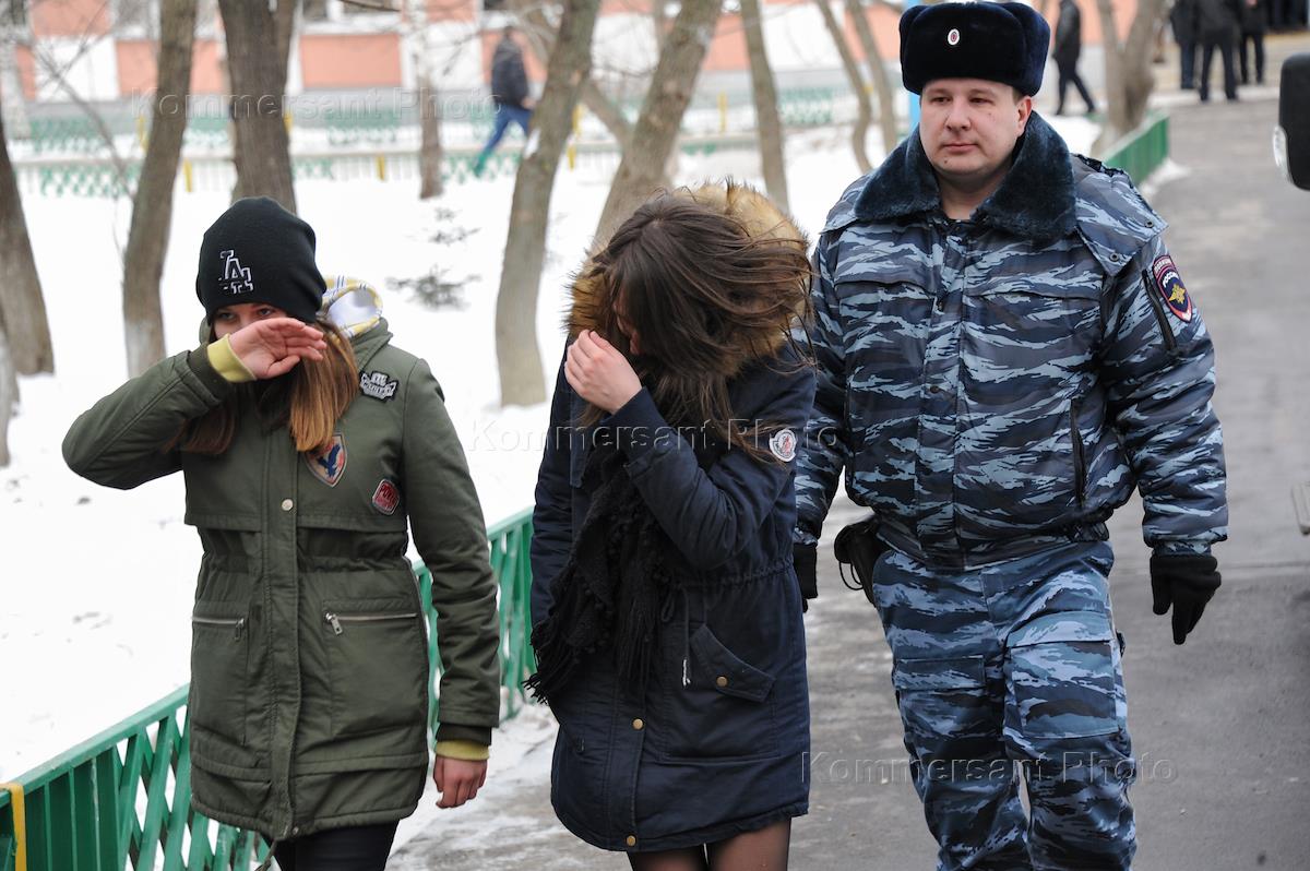 Сотрудники полиции выводят детей из московской школы № 263, куда проник вооруженный старшеклассник - учащийся школы.