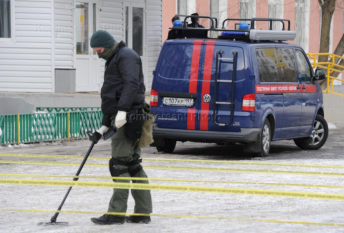 Сотрудники следственного комитета России около московской школы № 263, куда проник вооруженный старшеклассник - учащийся школы.