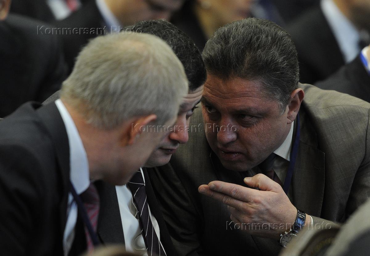 Слева направо: президент Республики Дагестан Рамазан Абдулатипов, министр регионального развития России Игорь Слюняев и президент Российского союза товаропроизводителей Олег Сосковец на заседании коллегии министерства регионального развития России, посвященном теме разработки документов территориального планирования в Российской Федерации.