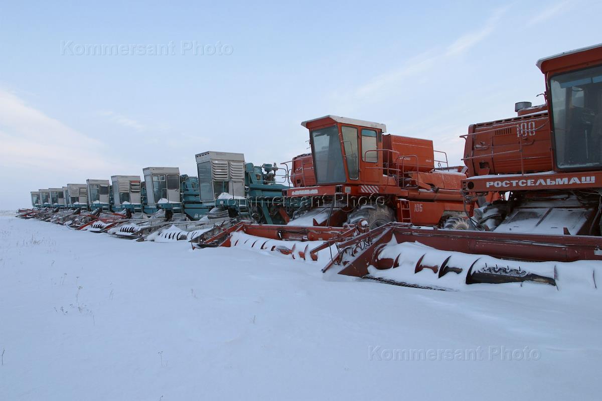 Комбайны под снегом.