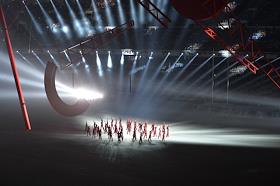 Олимпийские символы на церемонии открытия XXII зимних Олимпийских игр в Сочи.
