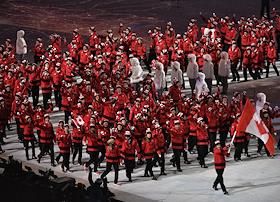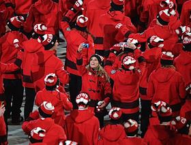 XXII зимние Олимпийские игр в Сочи. Церемония открытия прошла на стадионе "Фишт". Олимпийская сборная команда Канады во время церемонии открытия.