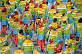XXII зимние Олимпийские игр в Сочи. Церемония открытия прошла на стадионе "Фишт". Олимпийская сборная команда Бразилии во время церемонии открытия.