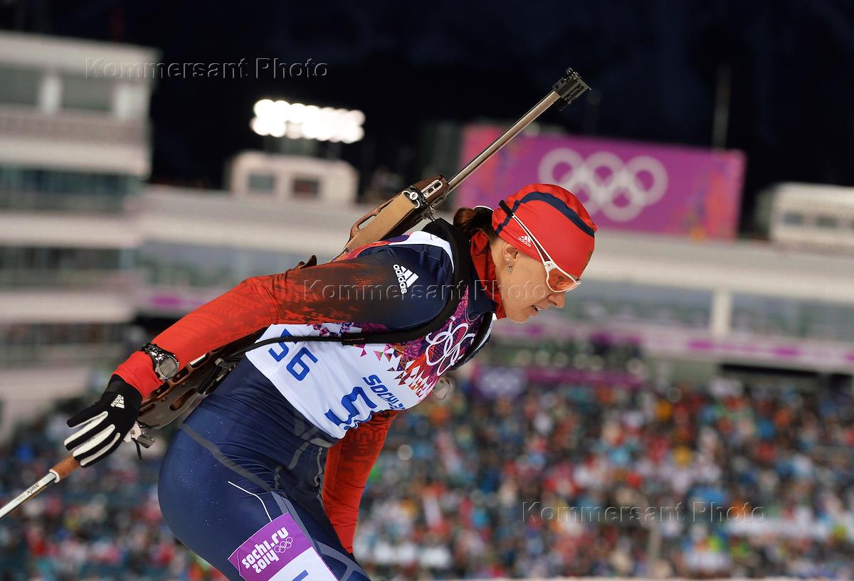 XXII Зимние Олимпийские игры в Сочи. Биатлон. Спринт на 7,5 км среди женщин. Член сборной команды России по биатлону Ольга Вилухина во время спринтерской гонки.