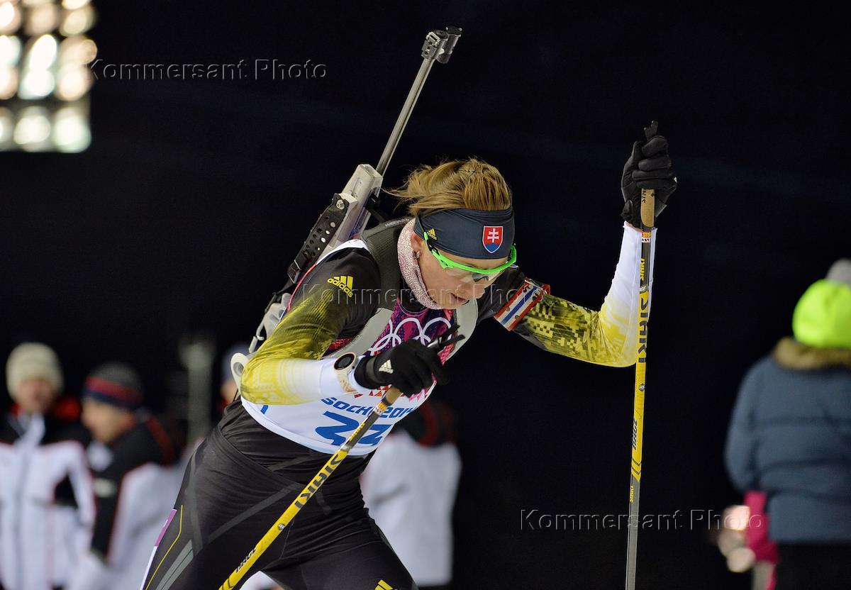 XXII Зимние Олимпийские игры в Сочи. Биатлон. Спринт на 7,5 км среди женщин. Член сборной команды Словакии по биатлону Анастасия Кузьмина во время соревнований.