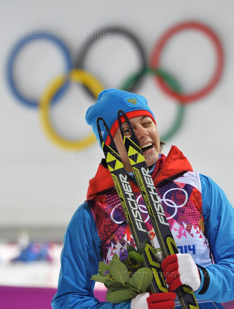 XXII Зимние Олимпийские игры в Сочи. Биатлон. Спринт на 7,5 км среди женщин. Член сборной России по биатлону Ольга Вилухина на церемонии награждения.