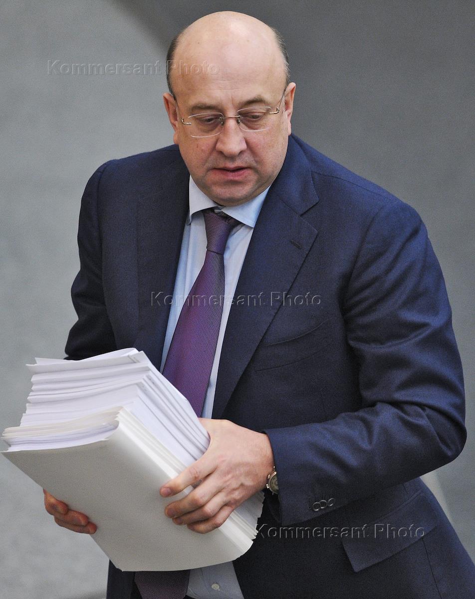 Председатель комитета Государственной думы России по делам национальностей Гаджимет Сафаралиев (слева) во время заседания Госдумы России.