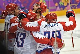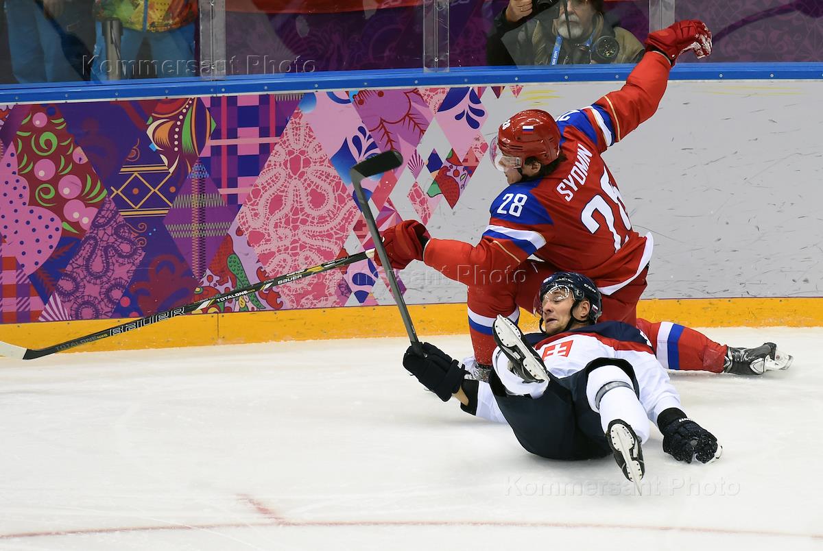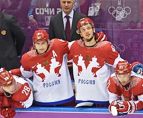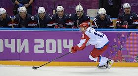 XXII Olympic Winter Games in Sochi. Members of the Russian Olympic team hockey during the group stage match between the national teams of Russia and United States.