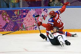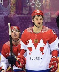 XXII Olympic Winter Games in Sochi. Member of the Russian Olympic team Alexander Semin (right) during the group stage match between the national teams of Russia and United States.