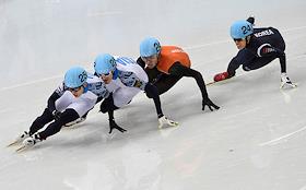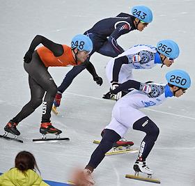 XXII Olympic Winter Games in Sochi. Member of the Russian Olympic team Viktor An in the final race at 1000 meters in the competition in short track men.