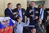 XXII Olympic Winter Games in Sochi. Russian Deputy Prime Minister Dmitry Kozak (left), Russian President Vladimir Putin (second right) and International Olympic Committee President Thomas Bach (right) during a visit to House of fans of Switzerland Olympic team in the Olympic Park.
