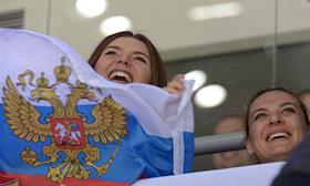 XXII Olympic Winter Games in Sochi. Fans of the Russian Olympic team during the group stage match between the national teams of Russia and United States.