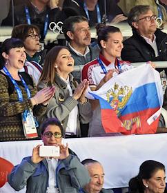 XXII Olympic Winter Games in Sochi. Olympic champion Yelena Isinbayeva during the group stage match between the national teams of Russia and United States.